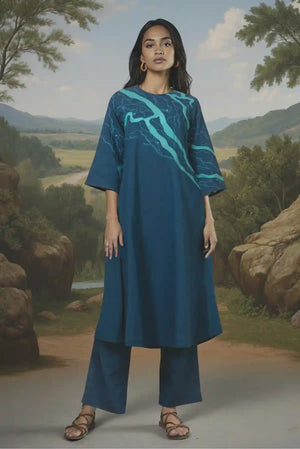 Okhai "Mahal" Hand-Embroidered Navy Blue Pure Cotton Kurta Salwar Set