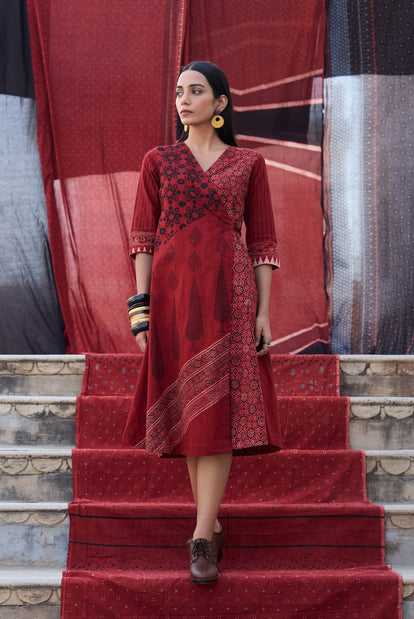 Okhai "Crimson Flow" Cotton Ajrakh Dress