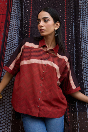 Okhai "Brickline" Pure Cotton Ikat Maroon Short Top