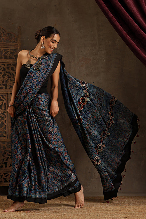 Specifications: Hand Block Printed, Natural Dye, Authentic About Craft: Ajrakh Craft is Natural Dyeing and resist block printing technique on cloth. It is estimated to be around 4000 years old. Sindh region is said to be the birthplace of Ajrakh. The Ajrakh artisans from Khatri Community of Kutch in India are originally from Sindh and they migrated to Kutch in Gujarat India. Around 16-step process required to create a piece of Ajrakh fabric is what makes the outcome so beautiful and intricate. In the past forty years ajrakh has not only been transformed from a rustic block print into a popular fashion fabric, it has also become the signature cloth of the Khatri communities of Kachchh and is their most successful product.