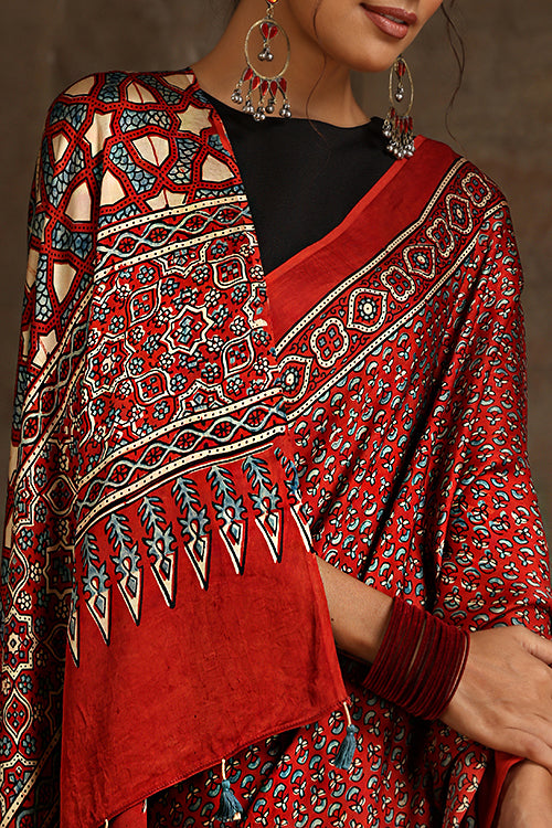 Tenaaro Ajrakh Hand Block Printed Modal Satin S...