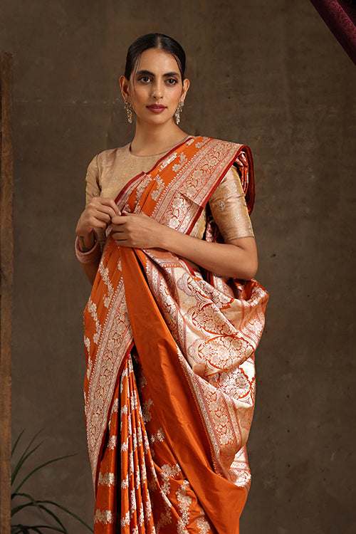 Nestled by the banks of Ganga, the city of Banaras narrates the timeless tales of tradition, heritage and culture. This city has a rich history owing to numerous cultural developments and one of them is the luxurious Banarasi silk sarees. Assimilating the sprit and traditions of several ages since the Vedic period, Banarasi Sarees are a testament to mastery of weaving techniques by artisans. The are famous for famous for their intricate weaving designs like jangla, jaali, kadwa patterns with precision on handlooms. Banarasi sarees are a perfect pick for festive occasions and weddings. Add a hint of classic jewellery to complete the look