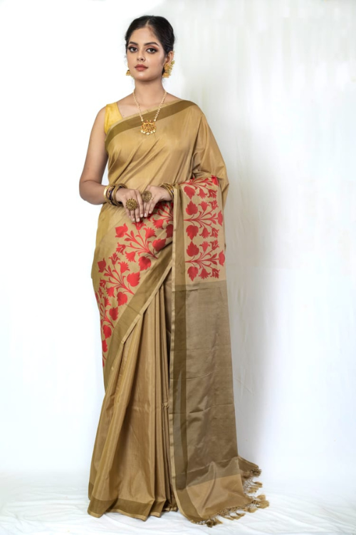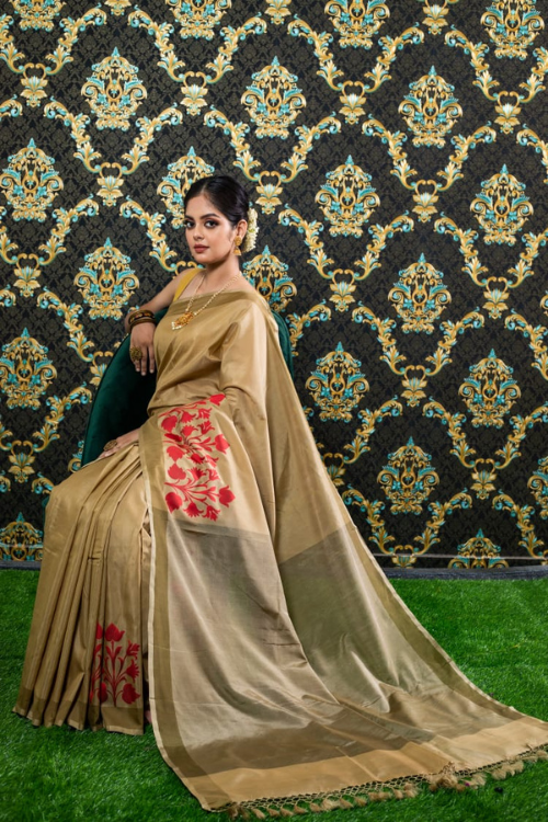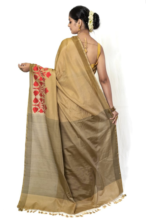"VWAS" Tassar Handloom Banarasi Pure Silk/Cotton Kadwa Scurt Saree