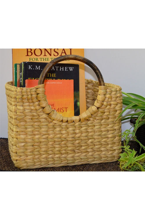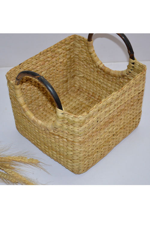 Handcrafted from Kauna Reed, this durable basket comes fitted with round wooden handles for easy portability. These baskets are ideal for keeping books & toys or for storing fruits, vegetables etc. Can also be used as planters. DHARINI products are handcrafted from eco-friendly and sustainable Natural Fibres. We bring together the incredible skills of artisans and master craftsmen from the remotest corners of the country, who have inherited and perfected their art over generations. Note - Each piece is handcrafted using natural fibres, slight variations may occur in colour, shape and size