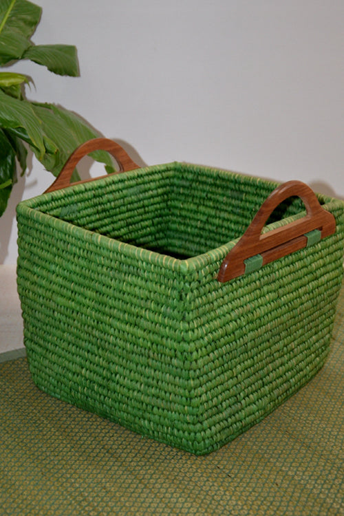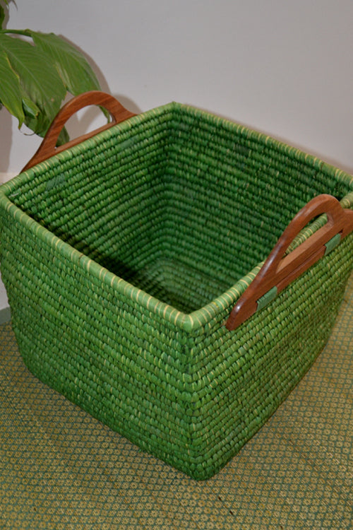 Stylish and durable these Storage Baskets have been handcrafted out of Sabai Grass and Palm Leaves. They come fitted with wooden handles for easy portability and are ideal for storing books, magazines, toys, laundry and more. DHARINI products are handcrafted from eco-friendly and sustainable Natural Fibres. We bring together the incredible skills of artisans and master craftsmen from the remotest corners of the country, who have inherited and perfected their art over generations.