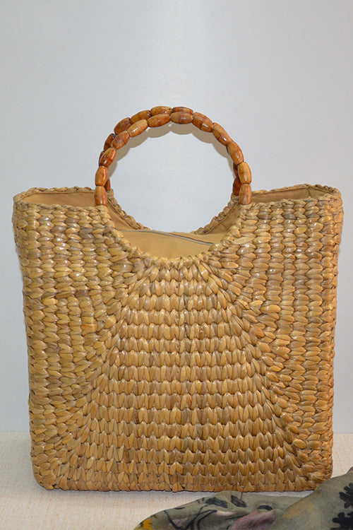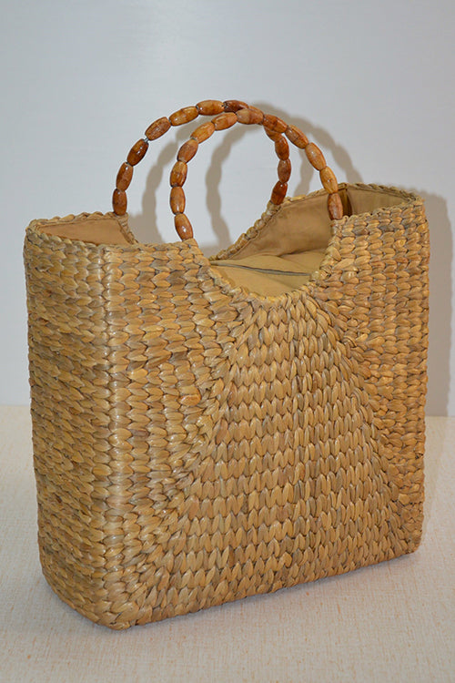 Smart and trendy, this square shaped Hand Bag is handcrafted out of natural and sustainable Water Hyacinth reeds and comes fitted with handles with wooden beads. It comes with cloth lining and an inside pocket and comes with a zipper at the top. It offers a spacious carry and is great to use. These bags come finished with a coating of clear lacquer for easy maintenance. DHARINI products are handcrafted from eco-friendly and sustainable Natural Fibres. We bring together the incredible skills of artisans and master craftspeople from the remotest corners of India, who have inherited and perfected their art over generations.