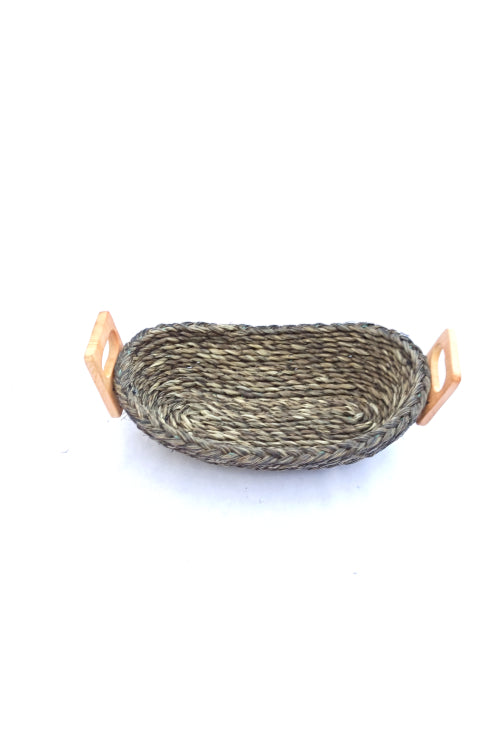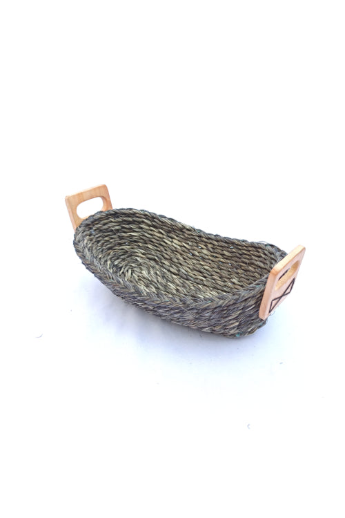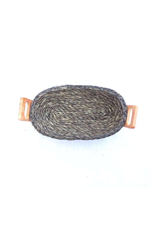 KADAM- HAAT products are all natural, handcrafted & ENVIRONMENT FRIENDLY. This bread basket is made of Sabaii grass and Bamboo handle. This grass is a perennial grass which grows in West Bengal & Orissa Mayurbhanj area primarily. We work directly with the craftswomen of the region supporting rural communities self-sustain themselves during non-farming season also. About 60 households are working only in sabaii grass now, making their ends meet through this project. The women crafts-group undergo trainings now and then learning various advanced skills as new groups emerge with more basic trainings and thus more self-employ ability. Sabaii Grass locally called Babuii grass is a very sturdy material and used to be used by the British Army in India for pulling their artillery, such is its strength. The bamboo used for the lid is crafted by craftsmen of East-Midnapur.