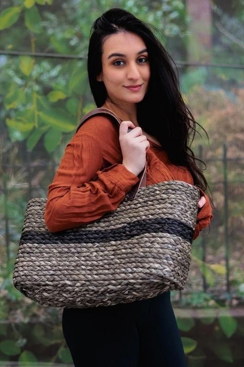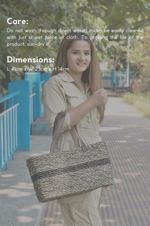 Crafted with Sabai Grass, this unique home and kitchen décor piece brings an organic element to the environment. Intricately woven, the non-plastic bag is perfect for carrying vegetables and fruits with its attractive bright colour. Hailing from the West Bengal and Orissa Mayurbxhanj area, it takes the skill of about 60 households of craftswomen and craftsmen to make ends meet with this sustainably-sourced material, which is historically renowned for its strength - having been used by the British Army to pull artillery. The lid is also crafted from bamboo from East-Midnapur. This package contains one handcrafted vegetable bag, colored by azo-free dyes.DIMENSION -L 41cm x W 23cm x H 14cm