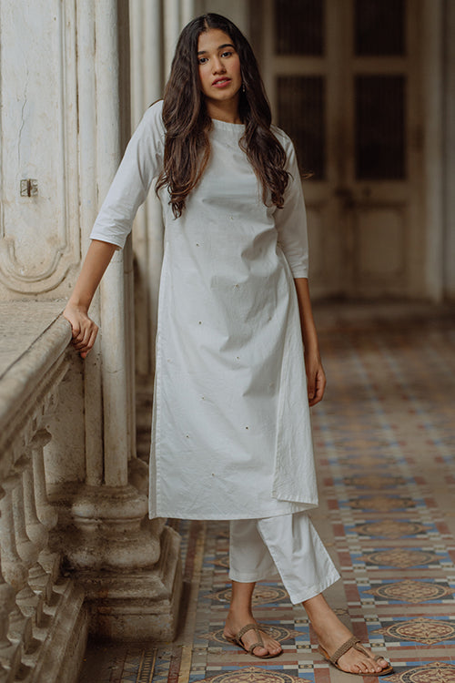 White has it all. Its beauty is absolute. We bring to you the perfect harmony of an all-white kurta pant set, 'Together', for you to all a timeless classic to your wardrobe!