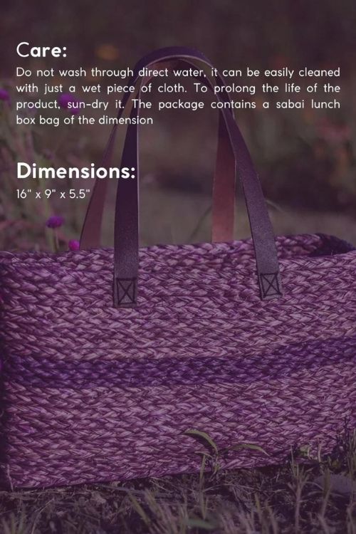Crafted with Sabai Grass, this unique home and kitchen décor piece brings an organic element to the environment. Intricately woven, the non-plastic bag is perfect for carrying vegetables and fruits with its attractive bright colour. Hailing from the West Bengal and Orissa Mayurbxhanj area, it takes the skill of about 60 households of craftswomen and craftsmen to make ends meet with this sustainably-sourced material, which is historically renowned for its strength - having been used by the British Army to pull artillery. The lid is also crafted from bamboo from East-Midnapur. This package contains one handcrafted vegetable bag, colored by azo-free dyes.DIMENSION -L 41cm x W 23cm x H 14cm