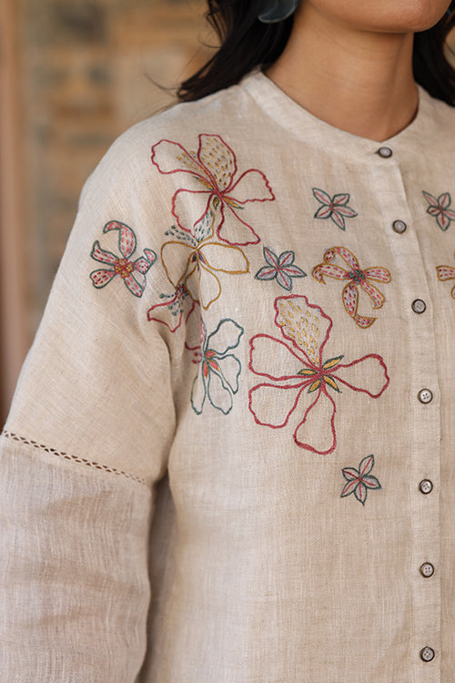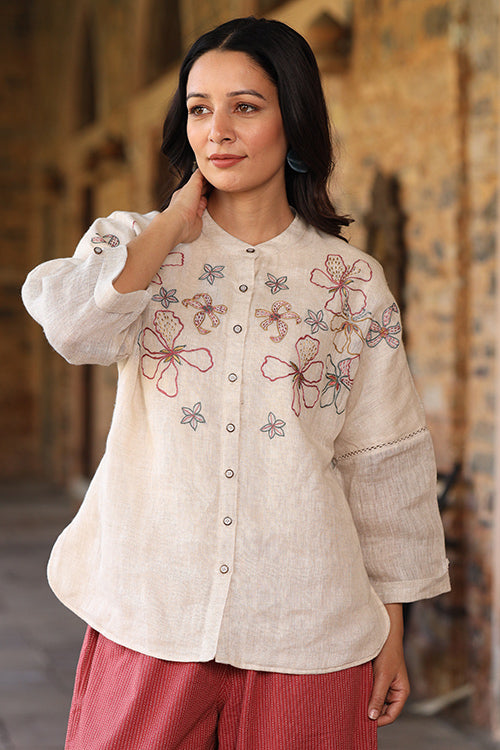 Okhai "Blossom Ballad" Handblock Printed Pure Cotton Shirt