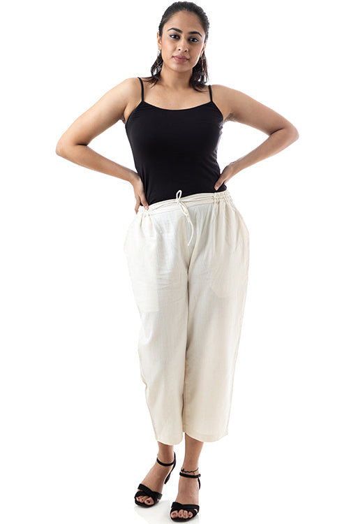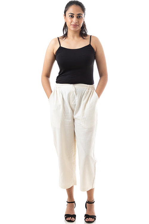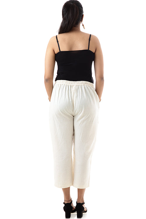 In thick yet breathable textured cotton, ecru, un bleached/un dyed smart pant is not only comfortable but can be teamed with anything casual. Soft on your legs with an elastic waistband. Wash Care- * Gentle, Cold, Machine/Hand Wash