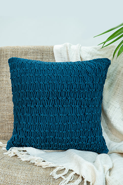 108Knots Criss Cross Dense Hand-Knotted Cushion Cover (Single Pc)-Indigo Blue