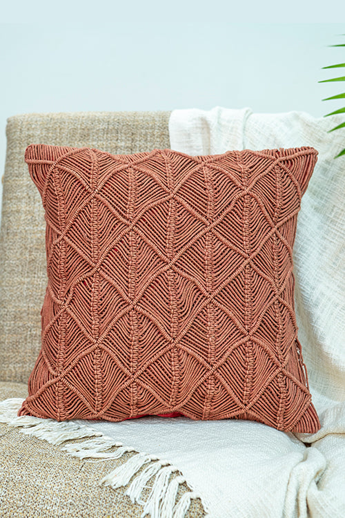 108Knots Cross Knot Hand-Knotted Cushion Cover (Single Pc)-Dusty Pink