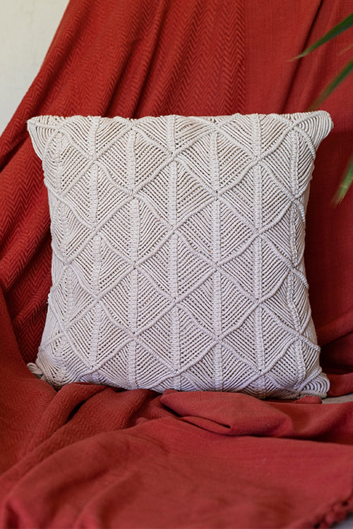 108Knots Cross Knot Hand-Knotted Cushion Cover (Single Pc)-Ivory White