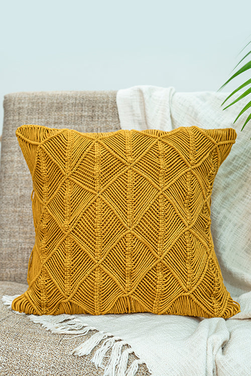 Meet our intricately hand-knotted cushion covers adding texture and richness to your home furnishings! These can be paired with any other cushion cover or make a style statement on their own. The new revamped designs are fun, cozy and colourful! NOTES : These cotton cords are hand dyed by skilled dyers through a careful process. Colour variation as seen on screen and actual product may vary slightly. Imperfections are generally minimized under strict quality control by our team. Minor differences in shape, size and colour are inherent in its making process.