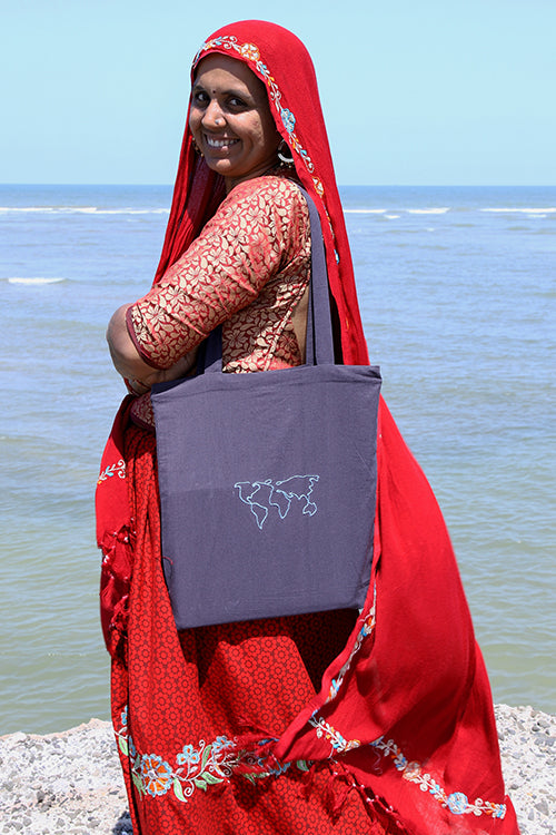 Okhai "Ahmedabad" Hand-Embroidered Pure Cotton Tote Bag