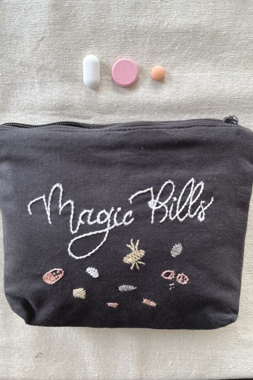 Okhai "Magic Pills" Hand-Embroidered Pure Cotton Pouch