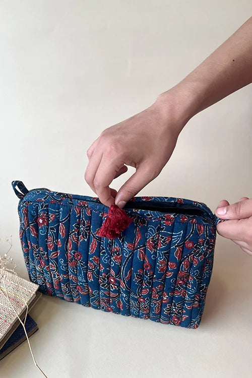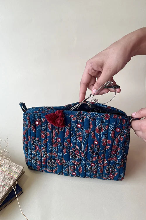 You’re going to love our "Nuance" Pouch! This gem is adorned with hand-embroidered mirrors, set against pure cotton and bursting with vibrant hand block printed motifs. The playful tassels add a delightful touch, making it as fun as it is functional. Perfect for your essentials, it’s more than just a pouch – it’s a piece of art. Take "Nuance" on your next adventure and let its charm brighten your journey!