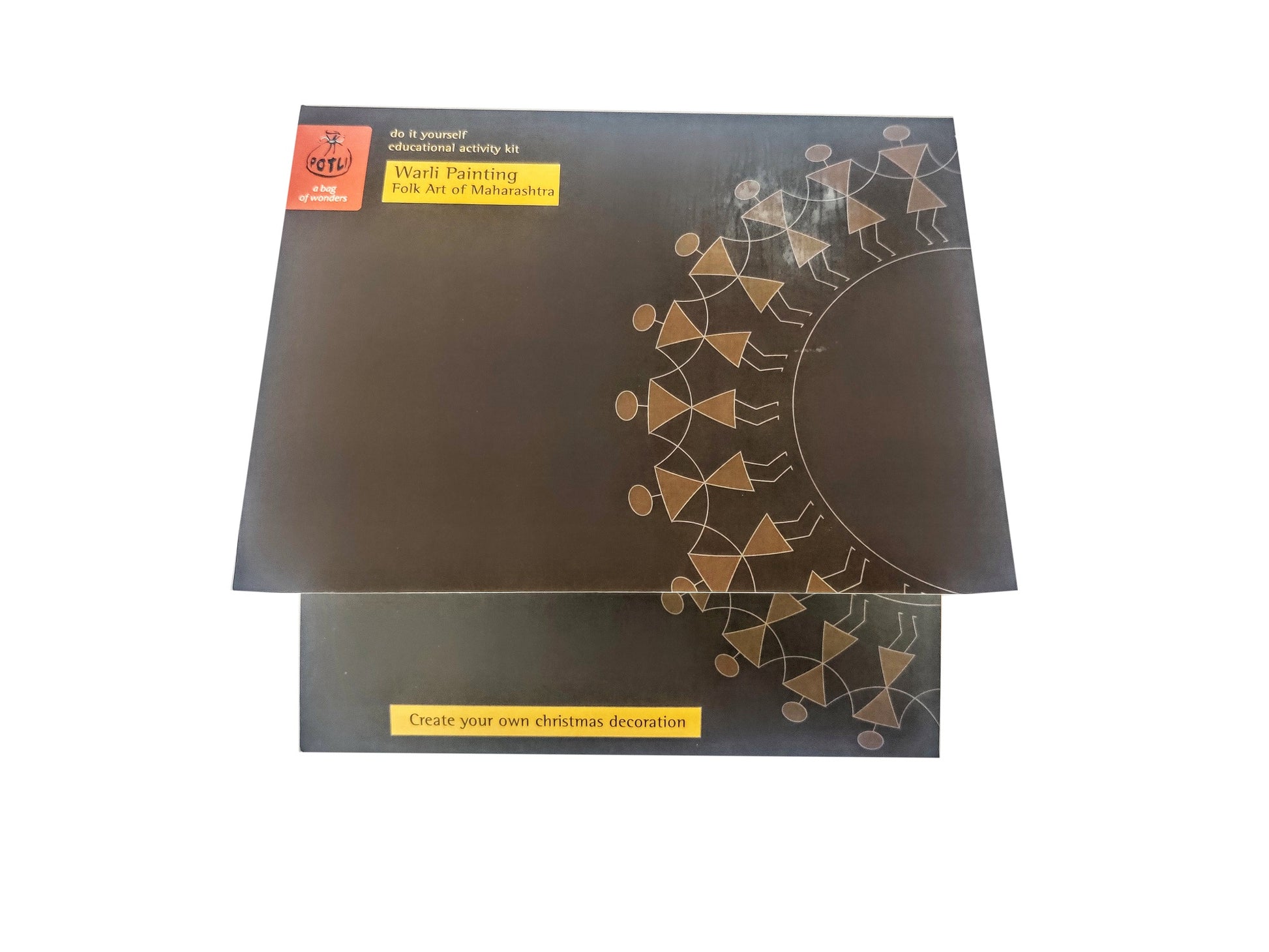 PERFECT CHRISTMAS GIFT FOR KIDS AGED 6 AND UP When kids get to make Christmas Tree Hangings and decorate themselves using all Natural and bio degradable materials, they feel like responsible grown ups ! Our FAMILY STAR paper hangings come all the way from the Forests of Madhya Pradesh!Made in collaboration with artisans. Profits shared with the artist.Craft type - Warli Art . Warli Art is a style of tribal art mostly created by the tribal people in Maharashtra, where it is still practiced today. Warli art is done with only white colour on a background of red ochre mud walls and it uses a set of basic geometric shapes: a circle, a triangle, and a square.Material : No plastic . Package Inclusions - jute string ,natural colors,template for making star- 4 cards, instructions leaflrt for warli painting. 100% natural.Potli is a member of FAIR TRADE FORUM-India. We follow all FAIR TRADE practices laid down by the Forum. EXCEPTIONAL DEVELOPMENTAL TOY This Kit encourages non-digital and tactile play . We stimulate creative thinking and imaginative play while sharing the rich cultural heritage of India.
