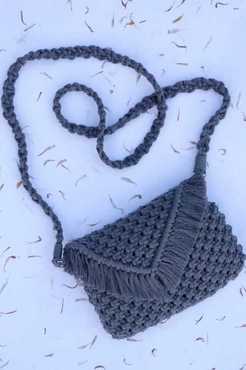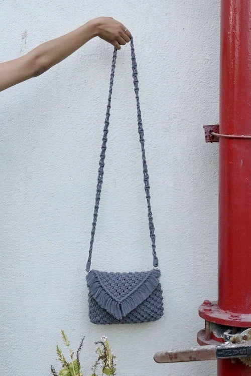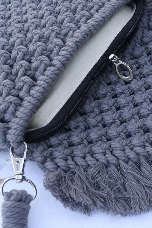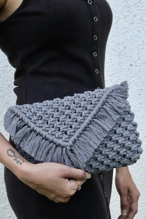 House of Macrame Handcrafted Macrame Clutch Bag with sling (Charcoal Grey)
