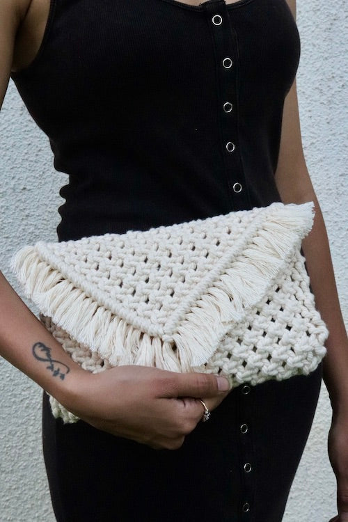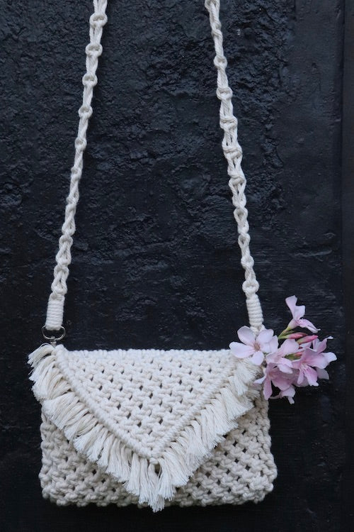 Handwoven purse from House of Macrame reflects elegance through each knot. The chic colour makes you stand out in the crowd, while the intricate design attracts all the attention. Hold it like a clutch, or sling it around!