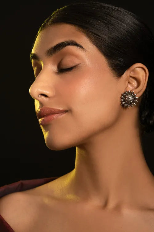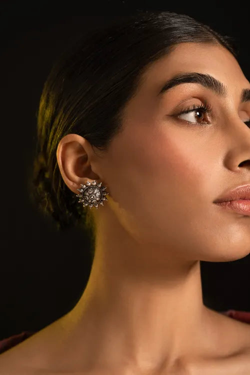 Pure Silver Traditional Maharashtrian Earrings - Phool Mandala. A gorgeous ode to heritage designs- An elaborate floral mandala etched in pure silver with gorgeously detailed flora. A collector’s piece made for heartfelt heirloom gifting or timeless celebration. This lovely piece has been beautifully crafted from pure Hallmark Silver and stands apart with its unique character. Handcrafted in Kolhapur, these designs have been inspired by traditional Maharashtrian designs. The process for the crafting of this beautiful Jewelry starts with the procurement of raw silver bricks, that are melted and alloyed only after a complete and thorough purity check is conducted on it. This alloy is then pressed into flat and thick wires and further refined to thinner wires depending on the requirements. The beads and small pieces of Jewelry are further crafted by skilled artisans in a precise and painstaking process.