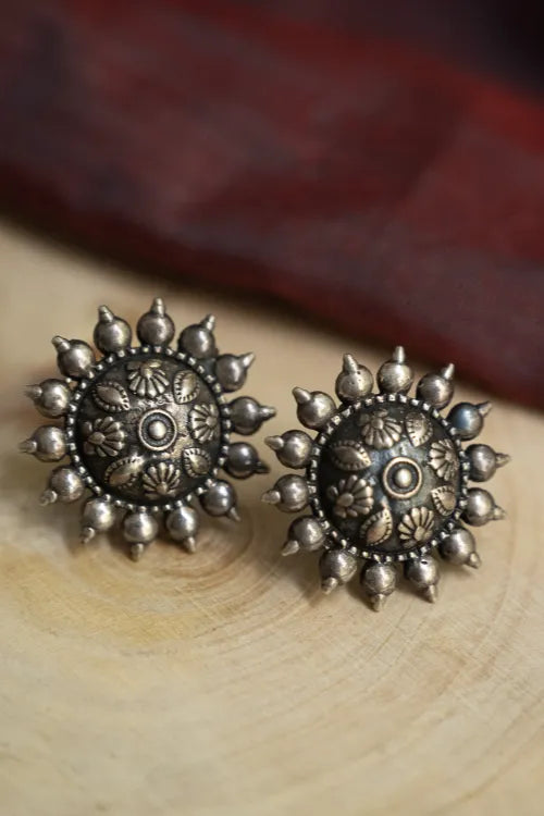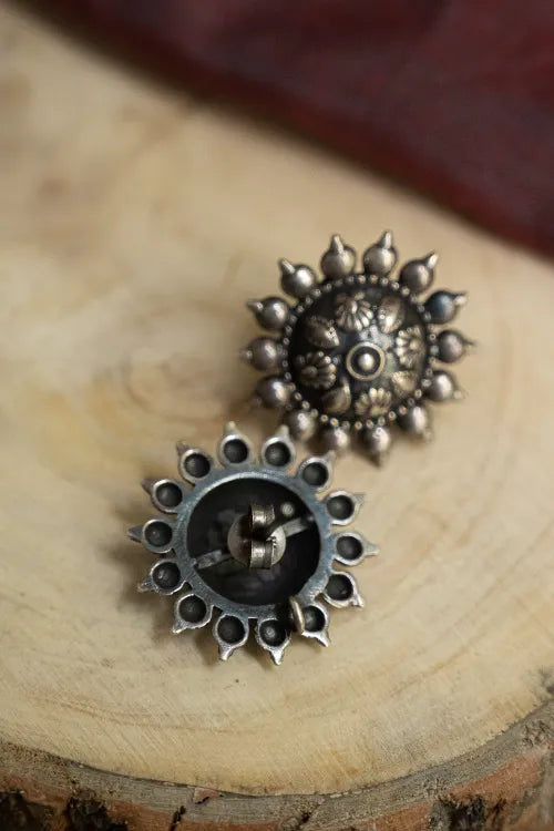 TICH Pure Silver Traditional Maharashtrian Earrings - Phool Mandala
