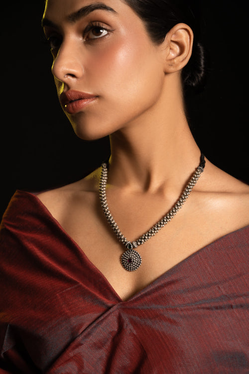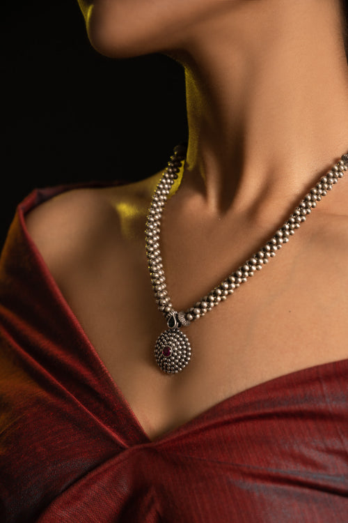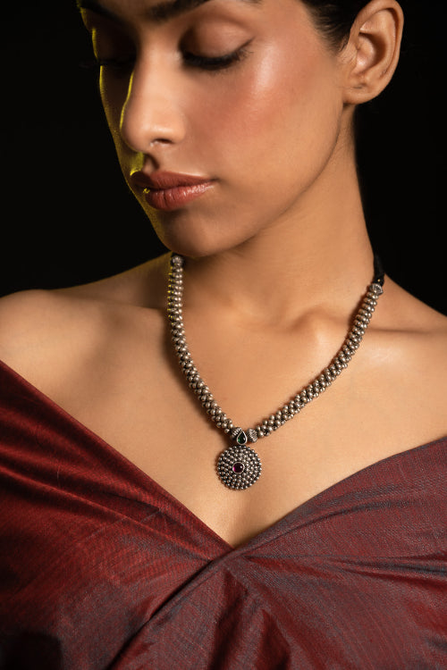 TICH Pure Silver Traditional Maharashtrian Neckpiece - Jondhalemani Thushi