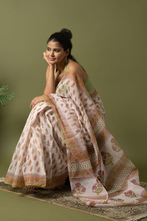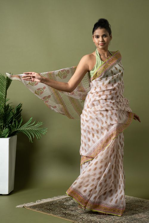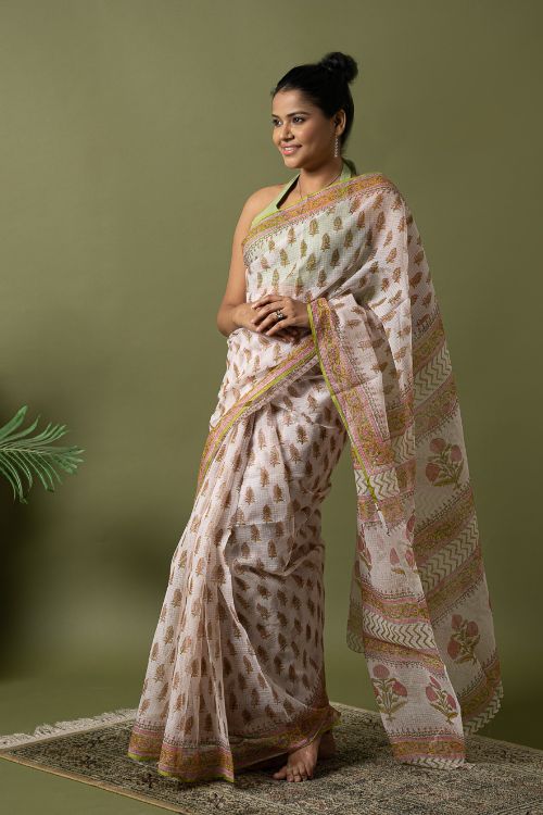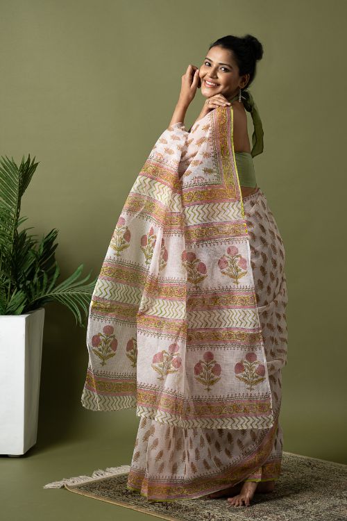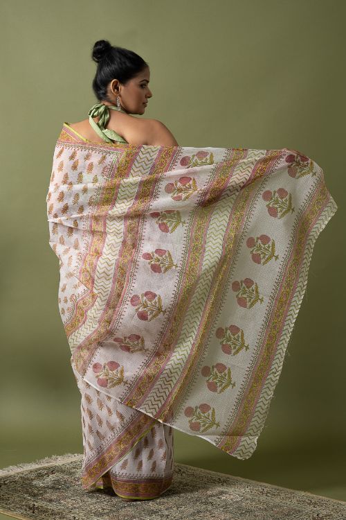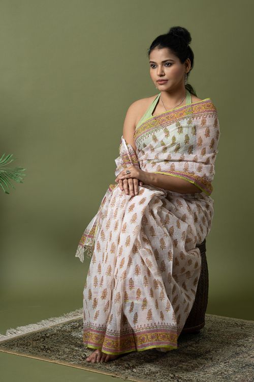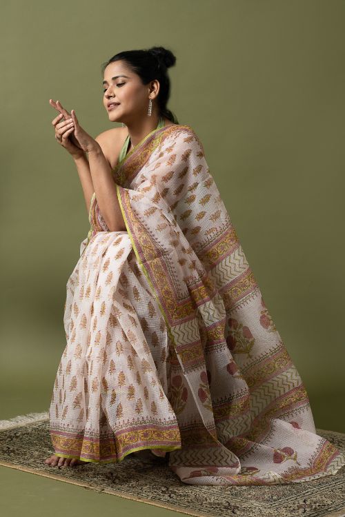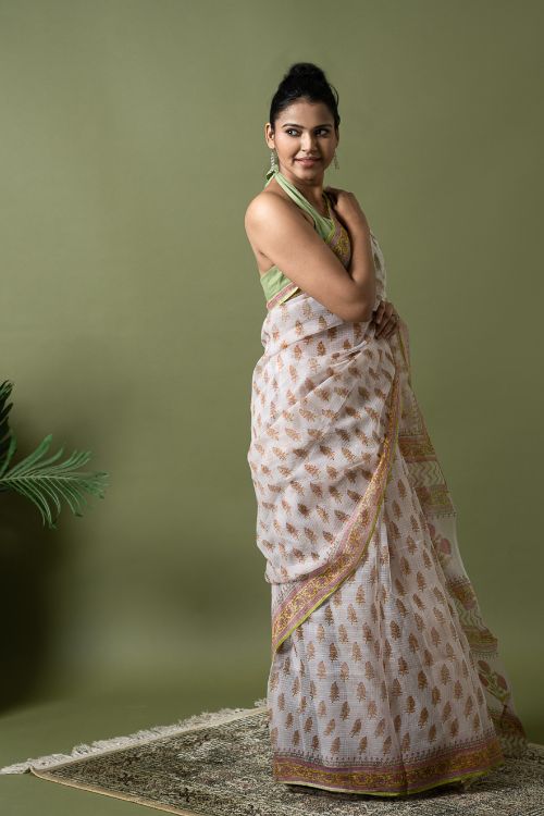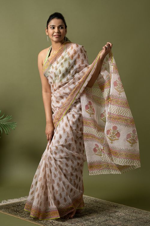 ICH Light & Breezy. Sanganeri Hand Block Printed Kota Doria - White Summer