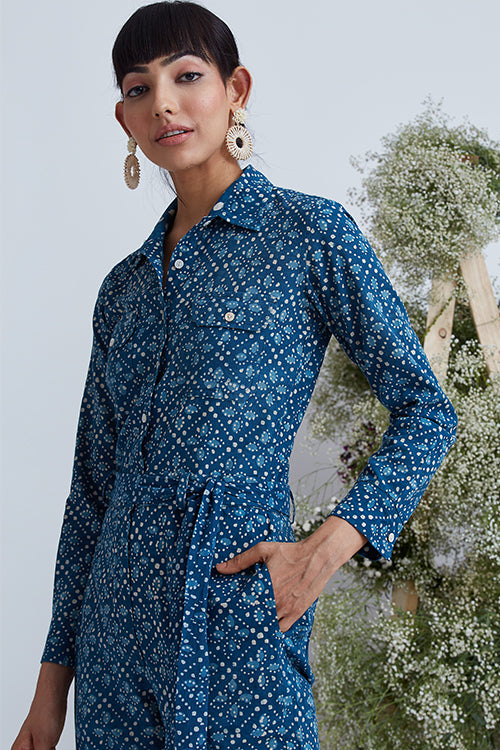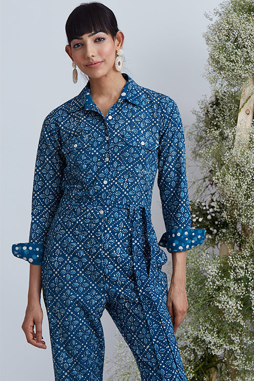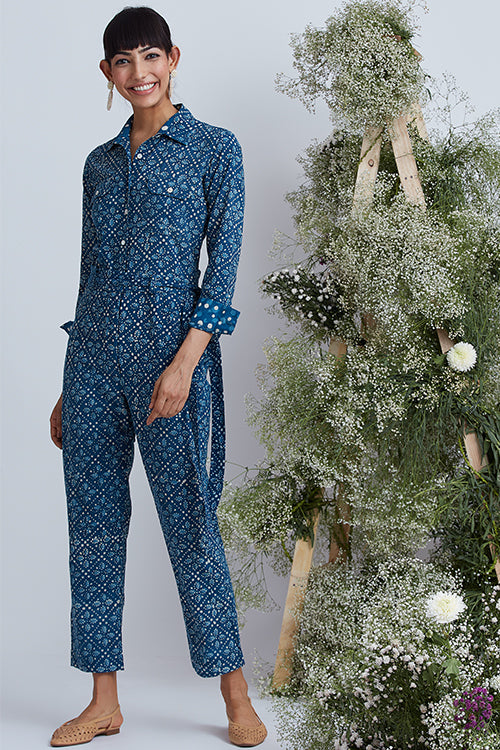 Okhai 'Aquatic' Hand Block Printed Pure Cotton Boiler Suit
