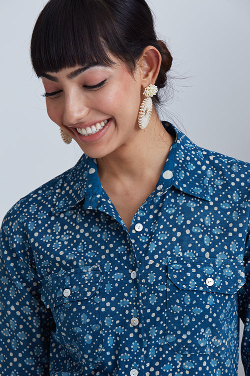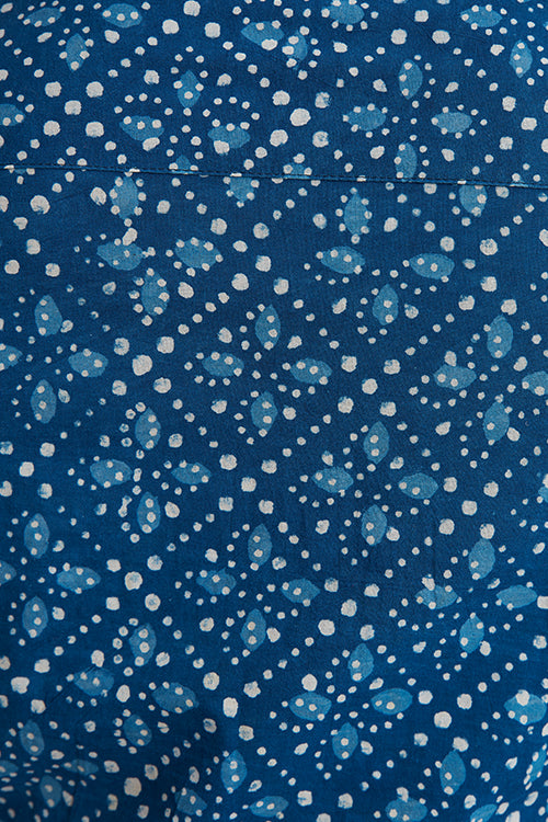 "Aquatic is one of the best suits you can get your hands on. This Boiler suit features a stunning indigo hand block print, wherein the design is influenced by the water and the surrounding environment to give it that natural look. The boiler suit comes with MOP buttons, which is one of the best quality clothing button choices on the market. It also features two pocket flats in the front to make the design look even cooler. 'Aquatic' is our favourite to wear all year round and will be your go-to when the warmer weather comes. This durable, lightweight fabric is amazingly soft and comfortable, while our signature boiler details deliver a sleek look. Note: You will certainly see the difference in the unique hand block printed fabric that makes each of our products unique and one-of-a-kind. The colour might vary slightly after the first wash, as indigo fabrics tend to bleed or rub on skin and light-coloured garments.