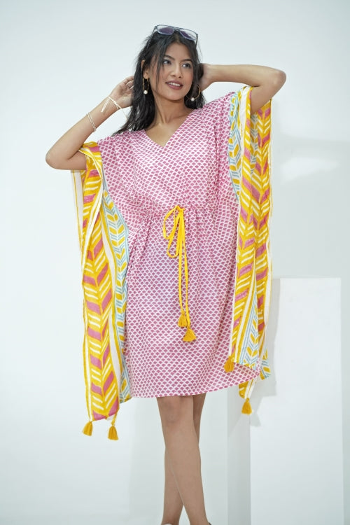 Sooti Syahi Rainbow Drops Hand Block Printed Kaftan