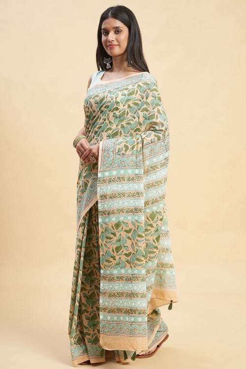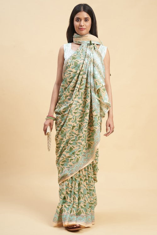 "Experience the comfort and beauty of the Autumnal Peach Block Printed Cotton Saree. Made from buttery soft Mul cotton, this saree is delicately crafted with Pient Handblock prints. Not only is it a perfect fit for Indian summers, but it also showcases the ancient art of block printing with its vibrant and bold designs. Draping has never been easier!"