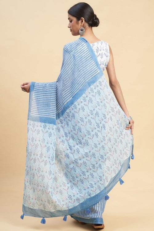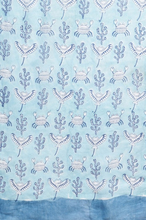 Indulge in the mesmerizing beauty of "Blue Crabs" HANDBLOCK PRINT MUL COTTON SAREE. Crafted with buttery soft mul cotton, draping this saree is a breeze. The vibrant and bold block prints, created using an ancient art form, add a touch of elegance. Stay comfortable and stylish this summer with this breathable saree.