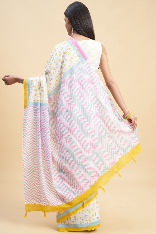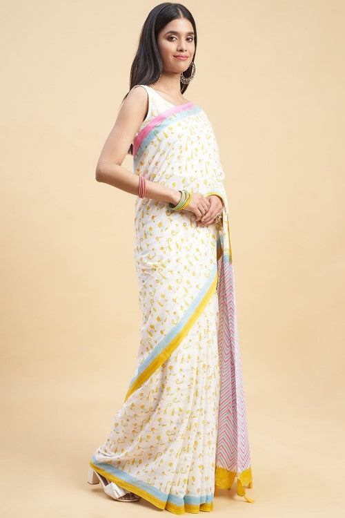 Let the vibrant and bold Pient Handblock prints of this Mul Cotton Saree elevate your summer wardrobe. Made from buttery soft mul cotton, this saree is not only beautiful but also comfortable and breathable. Experience the ancient art of block printing in a stunning and modern way!