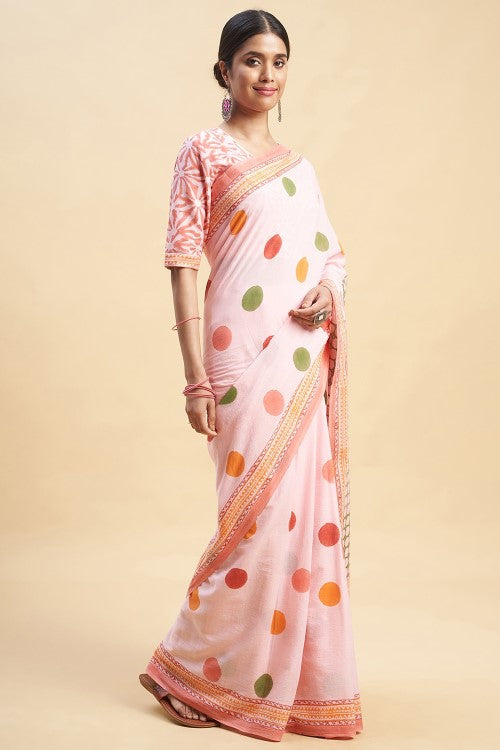 Indulge in the elegance and comfort of our "Ocean Pink Pearls" saree. Made with buttery soft mul cotton, draping becomes a breeze. The intricate Pient Handblock prints, an ancient method of printing, add a touch of vibrancy to this delicately beautiful saree. Perfect for daily wear in the Indian summer.