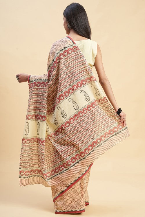 "Discover the beauty and comfort of our 'Robusta' Mul Cotton Saree. Made with buttery soft and breathable fabric, this saree features intricate Pient Handblock prints that add a touch of ancient art to your wardrobe. Perfect for daily wear in the Indian summer, draping this saree is a breeze!"