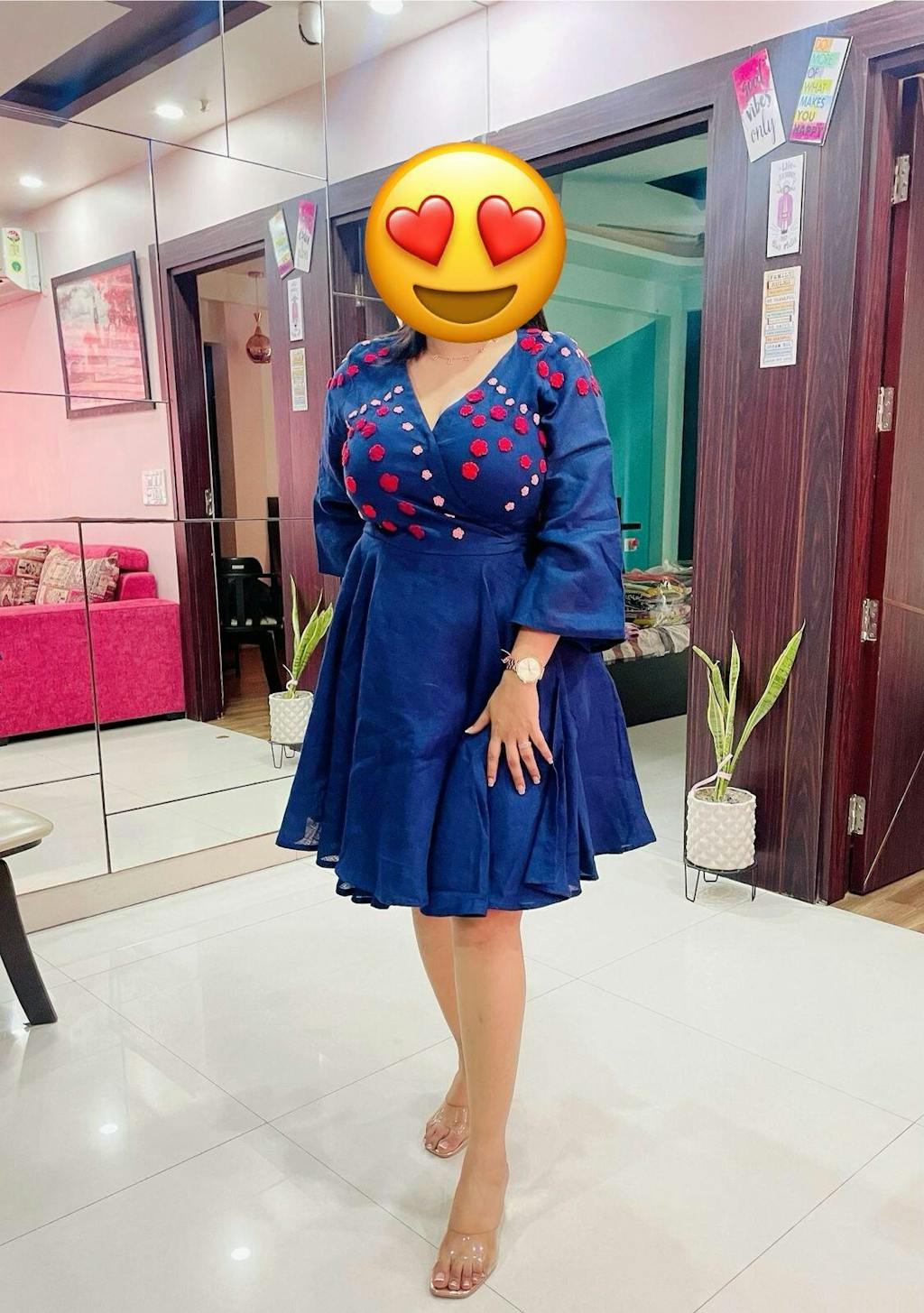 Introducing our latest addition to the collection - our most fun 'Bounce' dress! This short and sweet dress is perfect for those looking for a fun and easy-going summer outfit. Crafted with the utmost care, this dress features beautiful pink, red and maroon crochet flowers on the front, back yoke and sleeves, adding a touch of playfulness to your wardrobe. The 100% linen base ensures a breezy and comfortable fit, while the attached belt and shoulder loop with press buttons make for an effortless, yet stylish look. And let's not forget the added convenience of two pockets! This versatile dress can be styled in many different ways, making it a great addition to your summer wardrobe. Pair it with some strappy sandals and a sun hat for a chic daytime look, or dress it up with heels and statement earrings for a night out on the town. You can also layer it with a denim jacket or a cardigan for a cosy yet stylish ensemble. With 'Bounce', the styling possibilities are endless, making it a must-have piece when you do not want to think too much about what to wear.