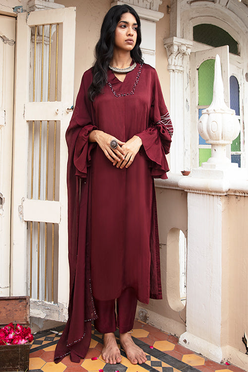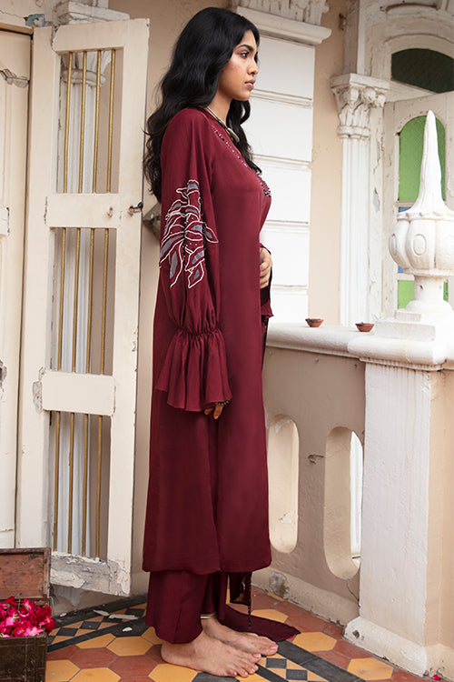 * Delicate glass bead embroidery scattered across the dupatta and on the hem ends