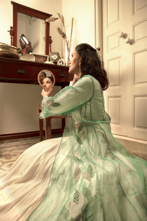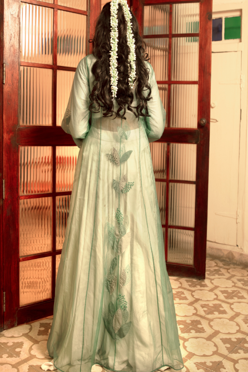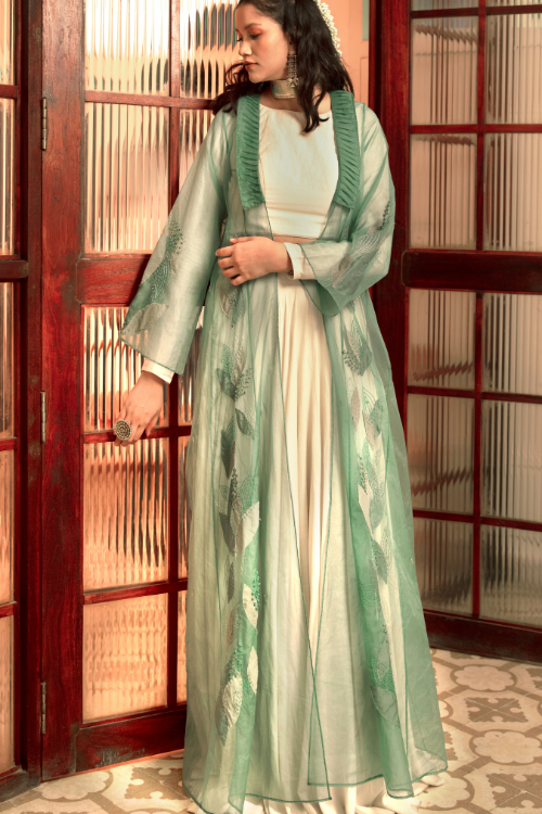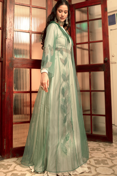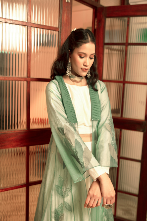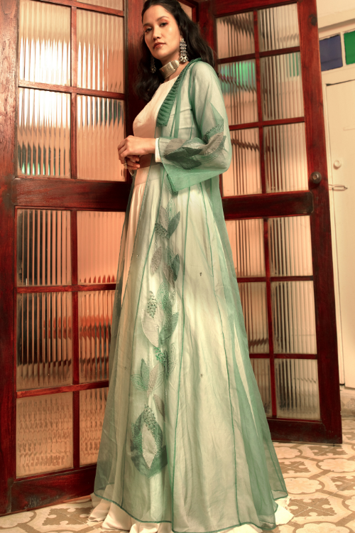 * Delicate thread, zari and glass beads embroidery all over the jacket