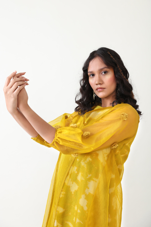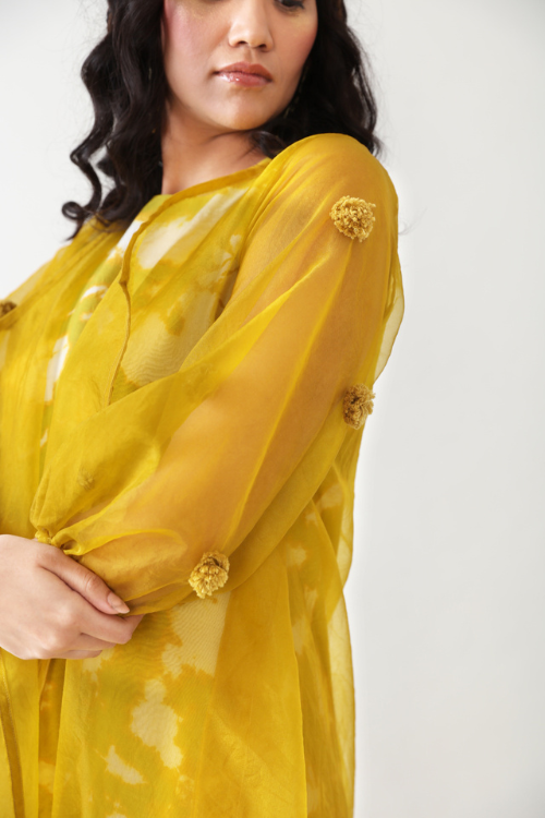 Craft -Hand Embroidered Pompom Detail On Peasant Sleeves