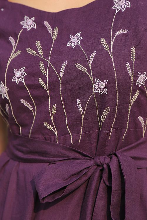 "One and done. Cranberry is a full-length jumpsuit that's fitted in the bodice with a belt and a concealed. The buttery soft cotton mulmul lining will leave you feeling de-stressed and soothed throughout the wear. Whilst the straps adjust the shoulder fit at the back, 4 wooden buttons on the straps add a touch of jazz to the look. That's not all, as a part of our Botanical collection, the Cranberry jumpsuit has intricately embroidered flowers and leaves with running and stem stitch on the front and back yoke for an elevated look. It also comes with 2 pockets for you to enjoy carefree and bagless. It's relaxed through the leg to provide you with the utmost comfort. Ideal for giving your legs some attention. Kitten heels and a jumpsuit - put these two together and you're bound to make magic!