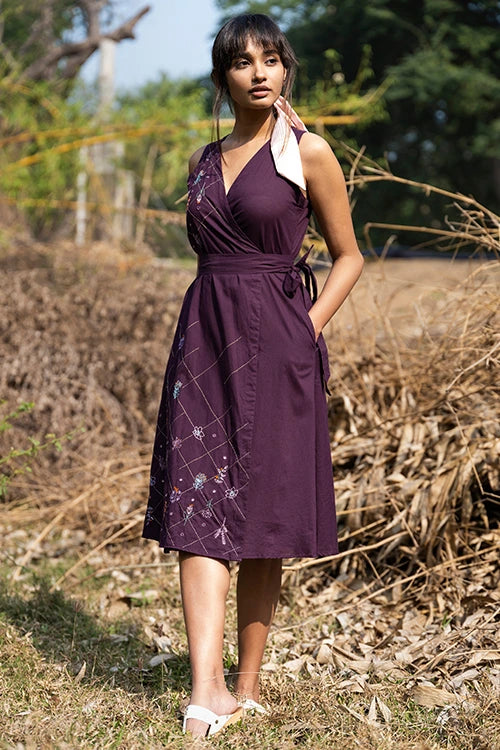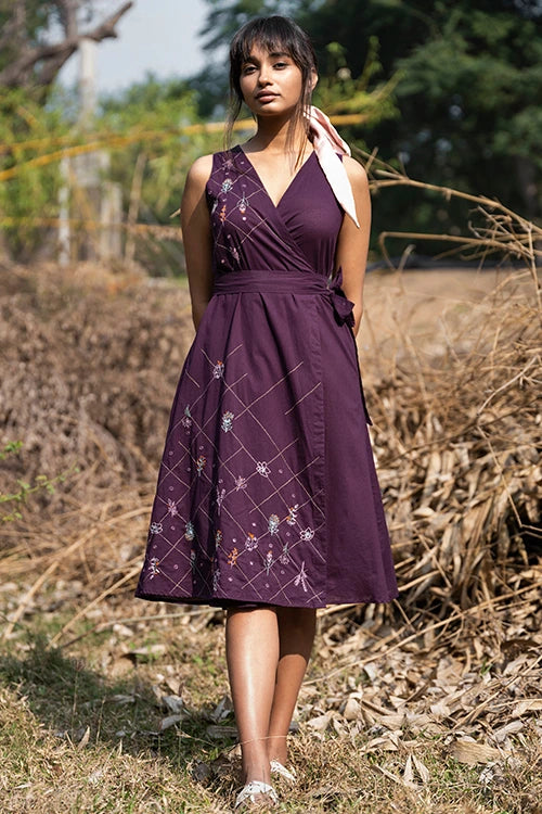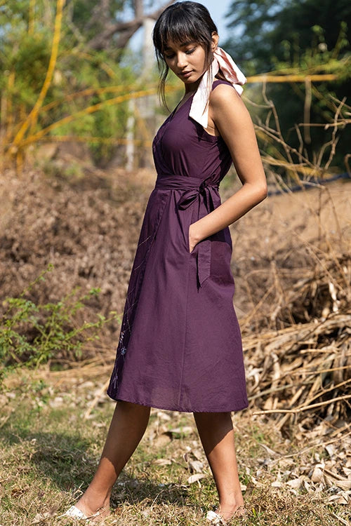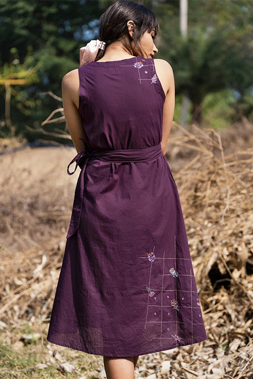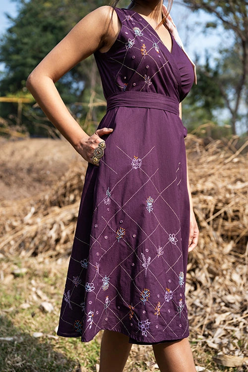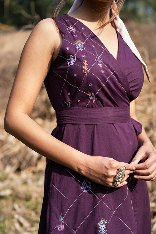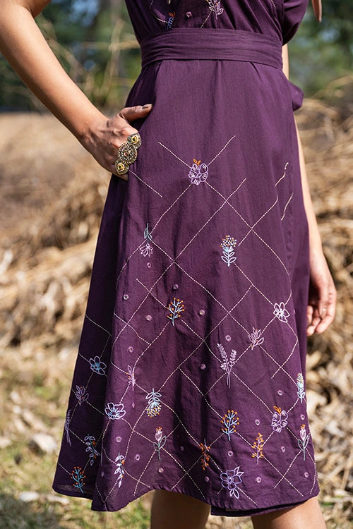 Crafted on a wine purple pure cotton fabric, 'Italian Passion' is a traditional wrap-style dress. It is carefully decorated with hand-embroidered flower motifs in between the grid-patterned lines on the right shoulder and bottom, and extended a little at the back shoulder and at the back to make you stand out. It also comes with one spacious pocket for you to enjoy the special occasion you wear it to. We want to have the same fun wearing the dress as we had making it. Add a touch of Italy to your wardrobe with this 'Italian Passion' dress. Maybe you a trip to Italy coming soon!
