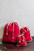 Wrap your presents in timeless elegance with our handcrafted crochet-embellished gift pouch set. Made with soft cotton fabric and adorned with delicate crochet lace and golden drawstrings, these pouches add a festive and luxurious touch to your gifting. Perfect for weddings, festive celebrations, or thoughtful keepsakes, these reusable pouches are both sustainable and stylish. Available in a range of vibrant colors and sizes, they make every gift feel extra special.