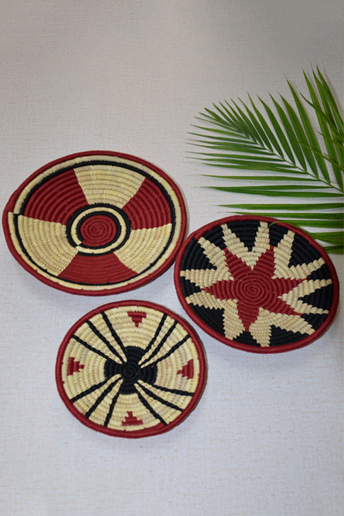 Dress up your walls with these beautiful, earthy and eco-friendly baskets, handcrafted out of Sabai Grass and Palm leaves. These can also be used functionally as fruit and vegetable bowls, for serving breads, as bathroom baskets etc. Each basket comes fitted with a loop at the back to hang on the wall. DHARINI products are handcrafted from eco-friendly and sustainable Natural Fibres. We bring together the incredible skills of artisans and master craftsmen from the remotest corners of the country, who have inherited and perfected their art over generations.