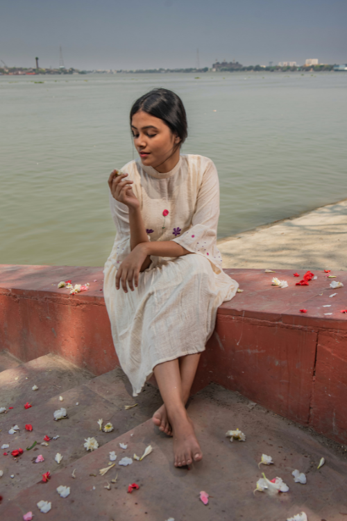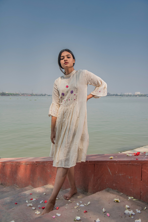 Moralfibre Kora Dress With Translusant Muslin Sleeves & Side Kali
