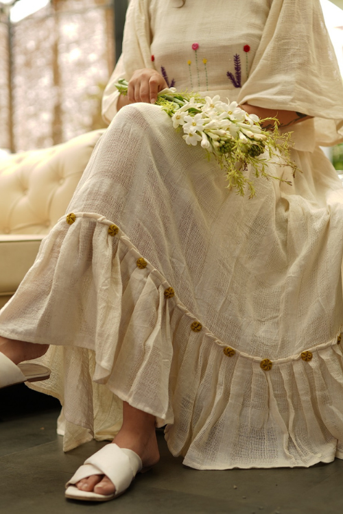 Bebaak Pankhuri Handwoven Cotton Tunic Set With Ruched Yoke
