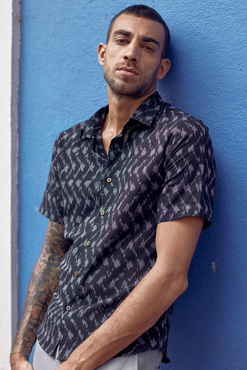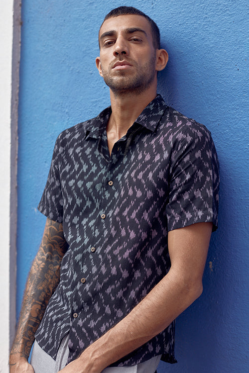 We've got lots coming up in our men's section this season! Okhai's 'Carnation' shirt is a tribute to the stunning craft of Ikat. Handwoven from pure cotton fabric, the placket has been lined with wooden buttons for a cool vintage look. The black and white combination is a classic match for this half-sleeved shirt. Pack it for a vacation to the beach, wear it over boardshorts or wear it buttoned up with jeans in the city and chill with friends. Be effortlessly cool and collect compliments!