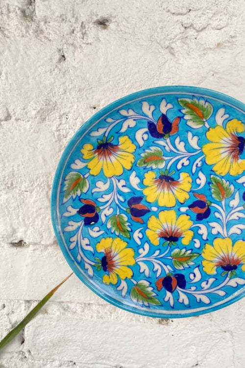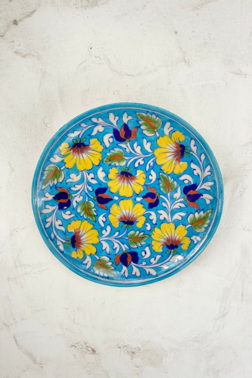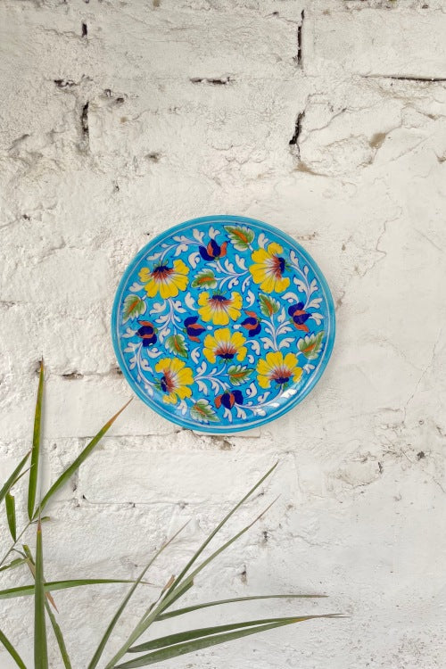 Blue Pottery Handcrafted Wall Hanging Plate Light Blue